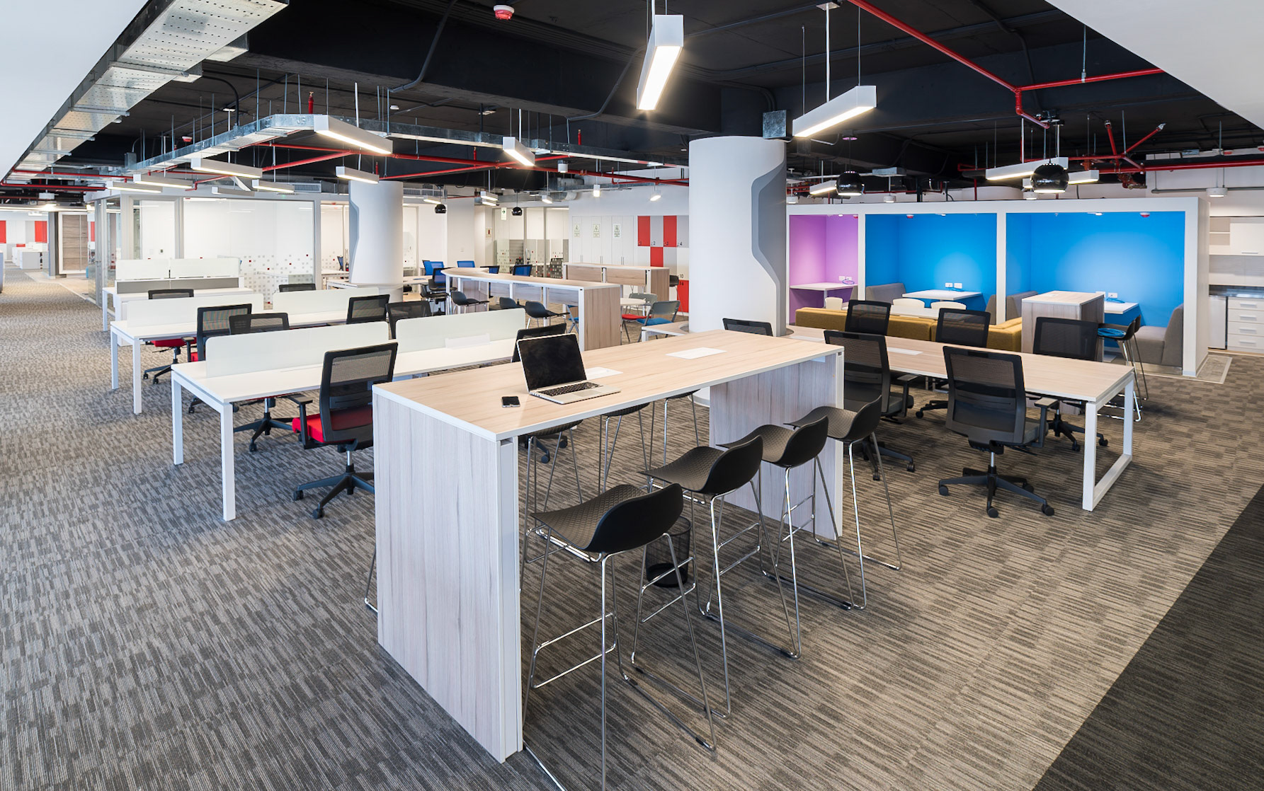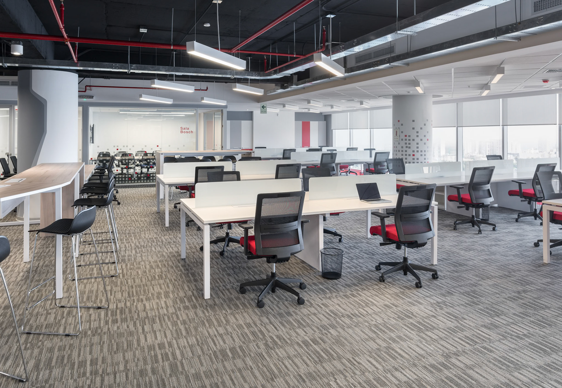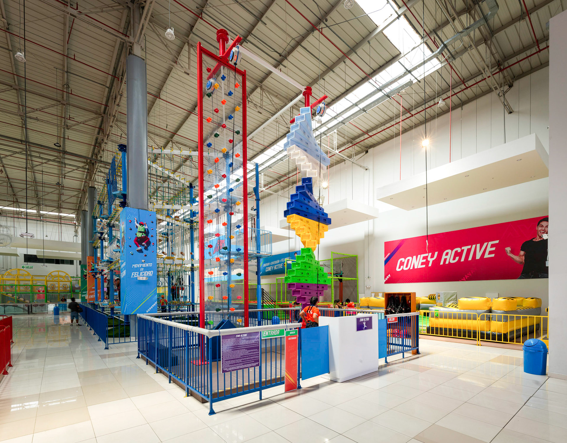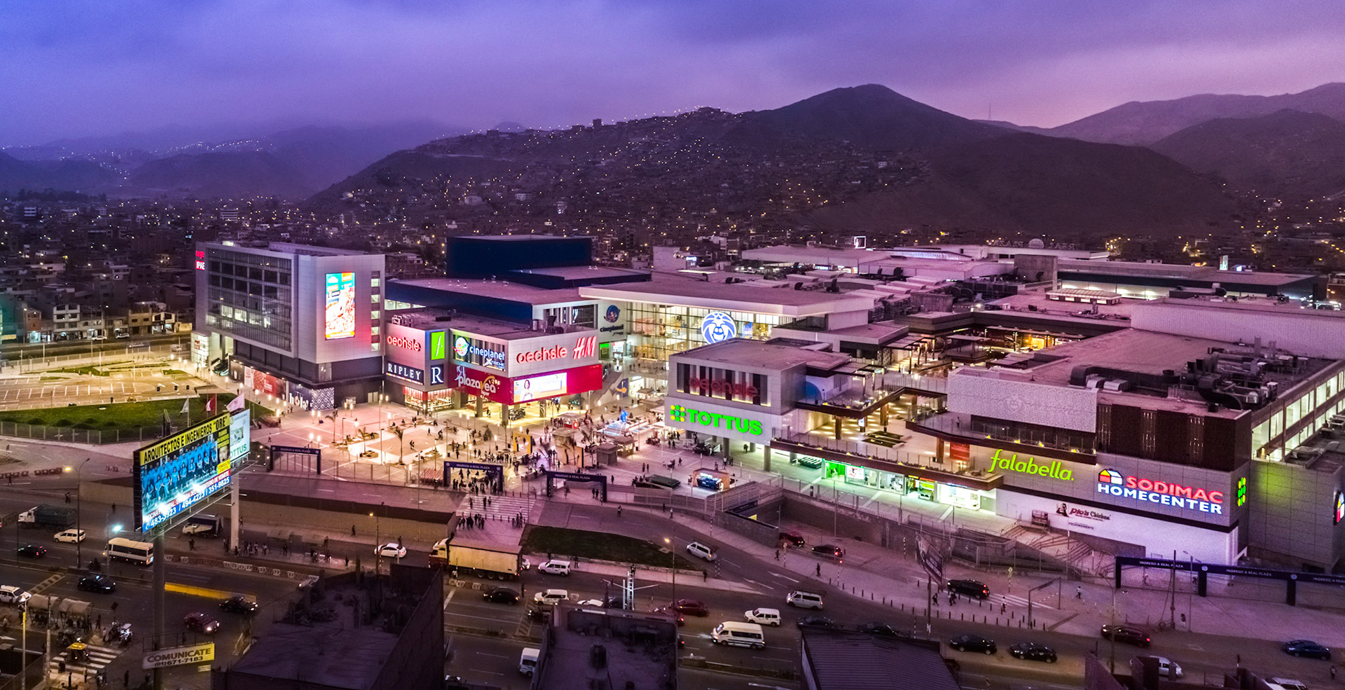 Aerial image of the construction of a coliseum, showing the gray work, the structures, the work of the cranes, metal structures of the roofs and very small people. Captured with a drone, under the light of a sunny day, in the city of Lima, Peru.