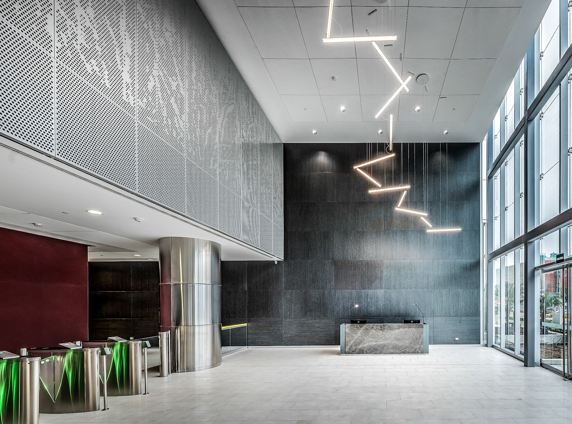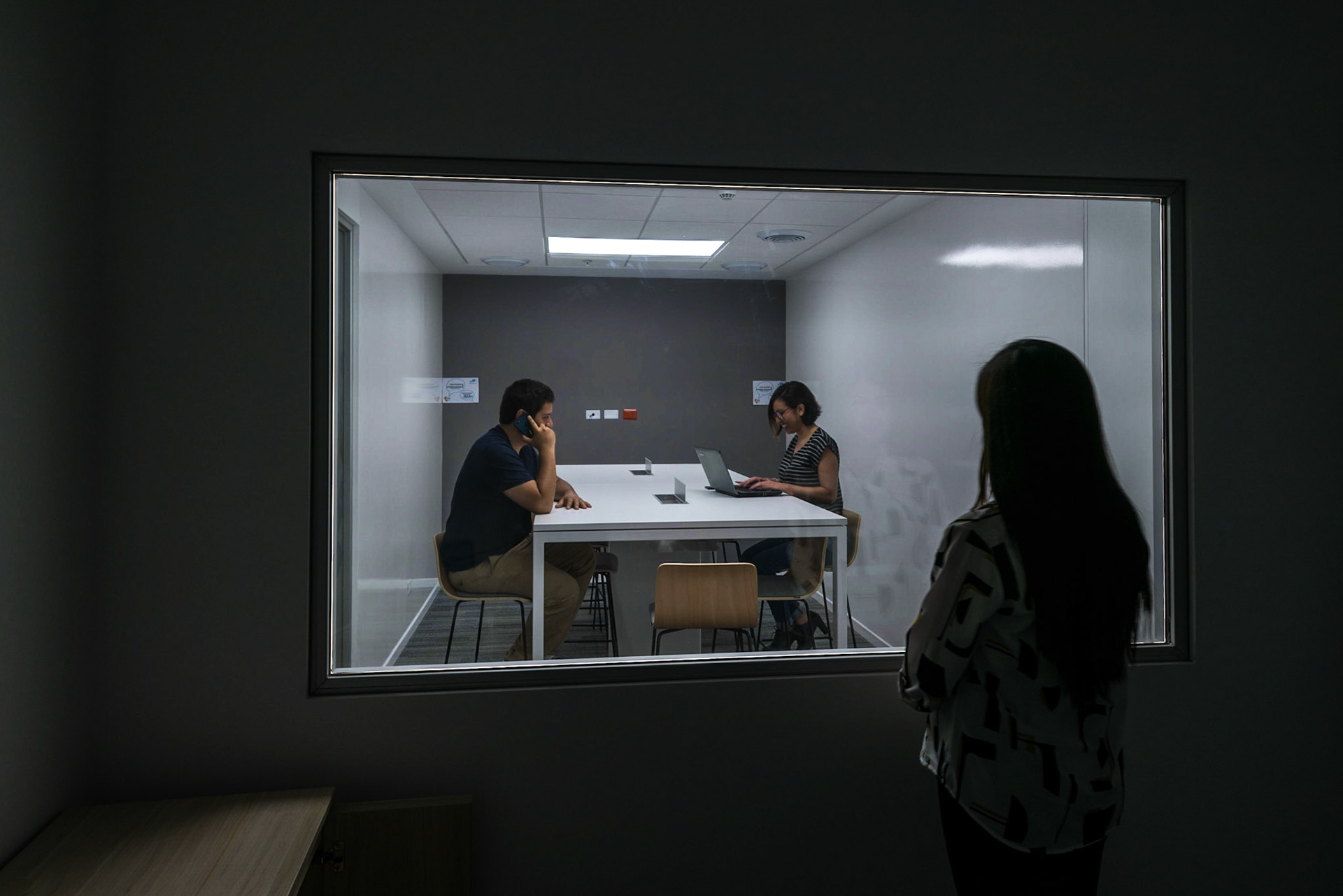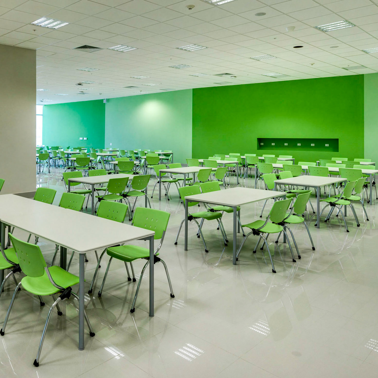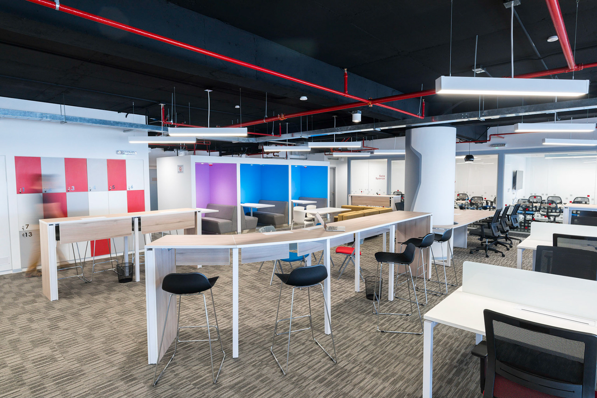 Aerial image of the construction of a coliseum, showing the gray work, the structures, the work of the cranes, metal structures of the roofs and very small people. Captured with a drone, under the light of a sunny day, in the city of Lima, Peru.