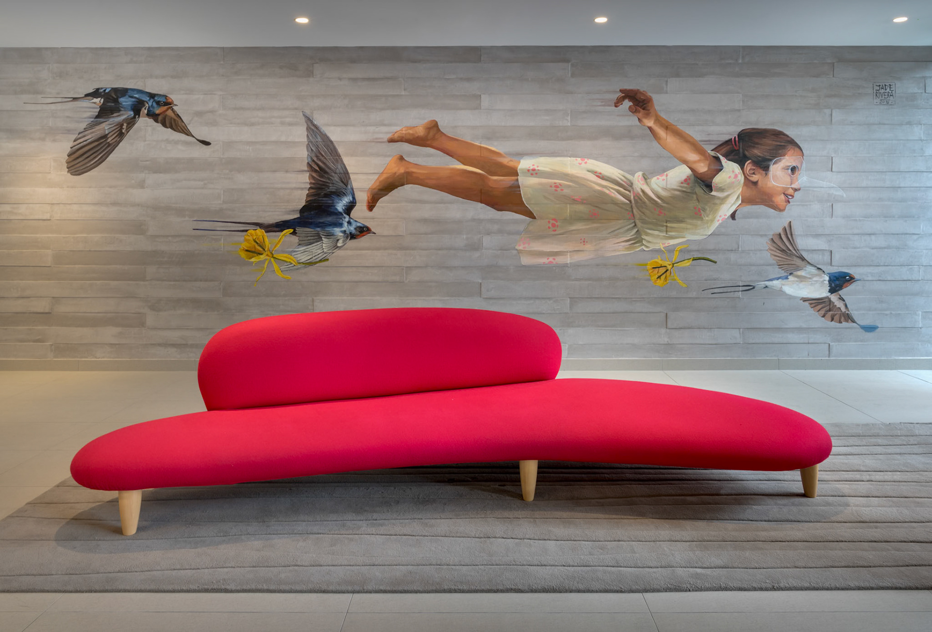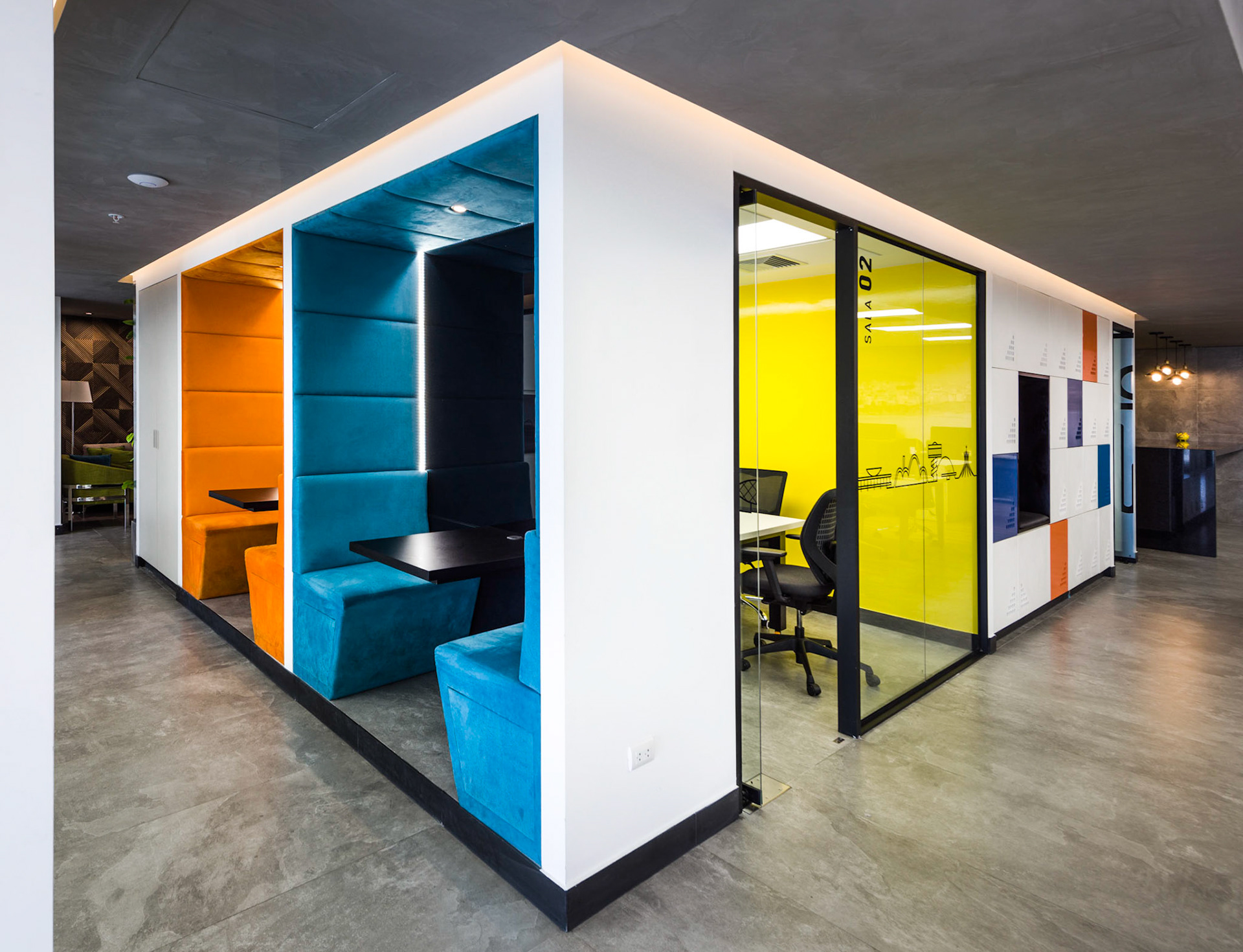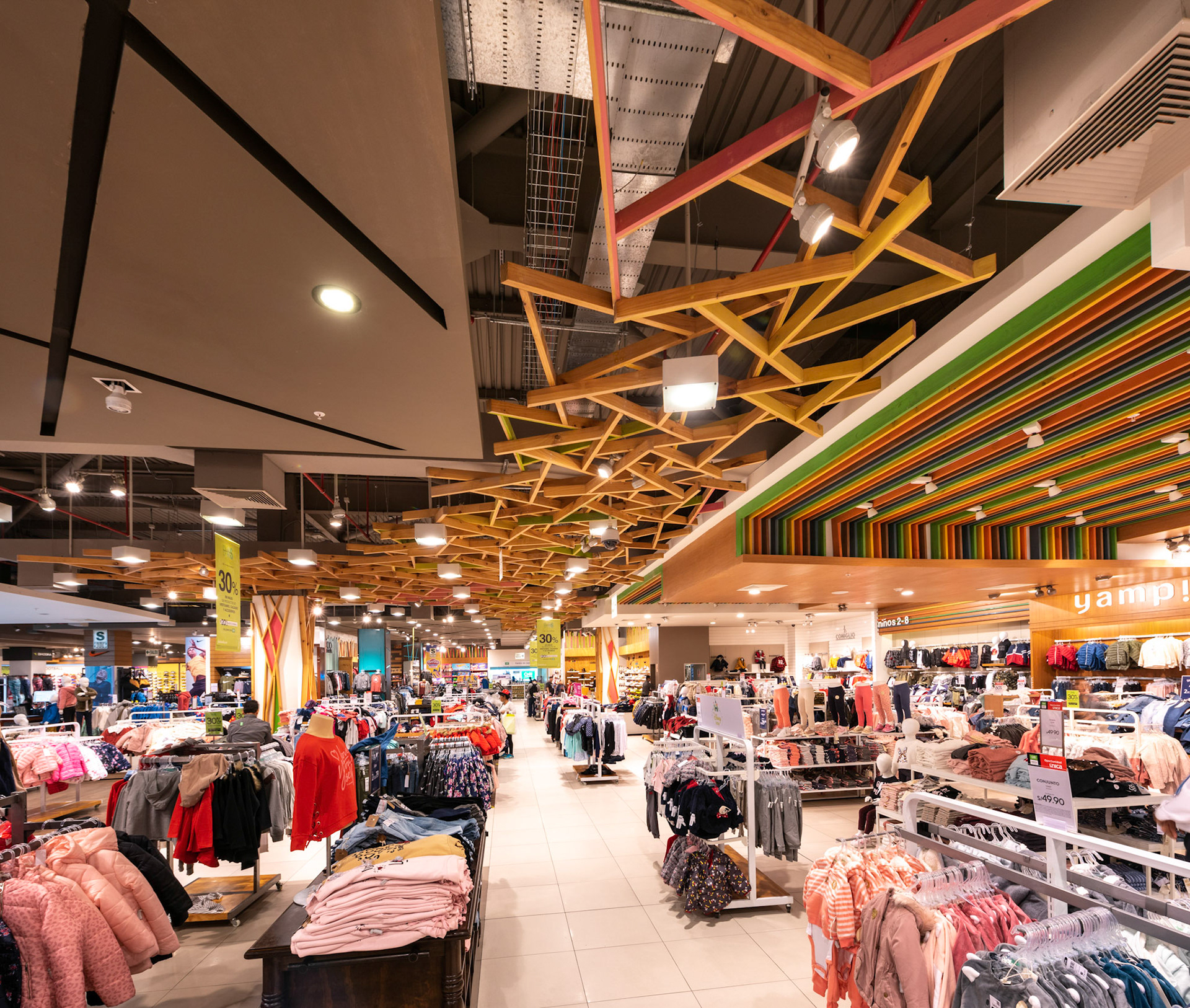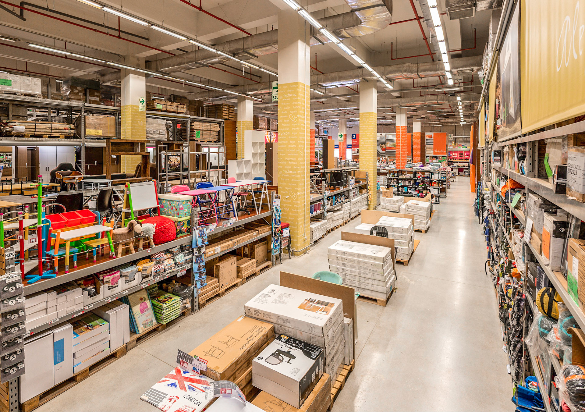 Aerial image of the construction of a coliseum, showing the gray work, the structures, the work of the cranes, metal structures of the roofs and very small people. Captured with a drone, under the light of a sunny day, in the city of Lima, Peru.